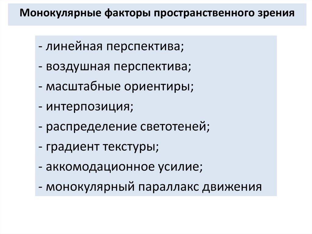 Монокулярные факторы пространственного зрения- линейная перспектива;