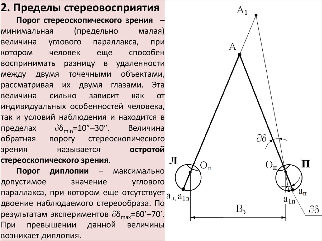 Зрительное восприятие трехмерного пространства человеком. Системы формирования объемного изображения