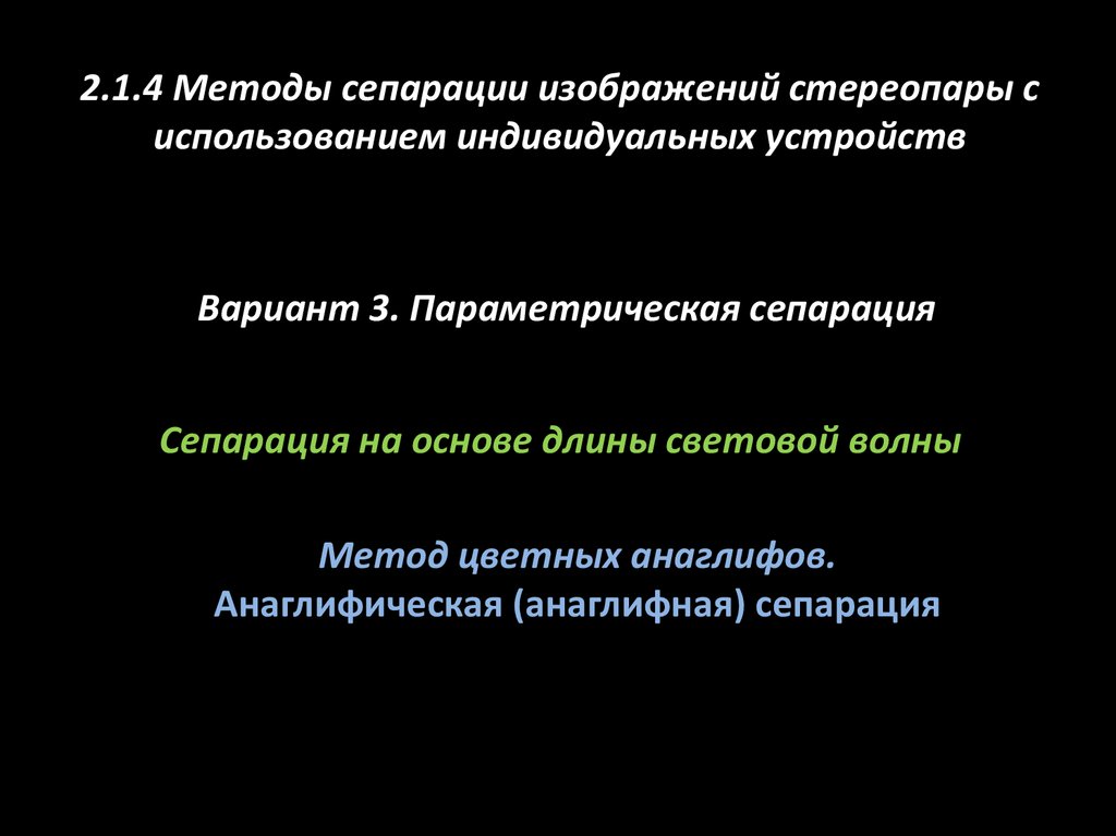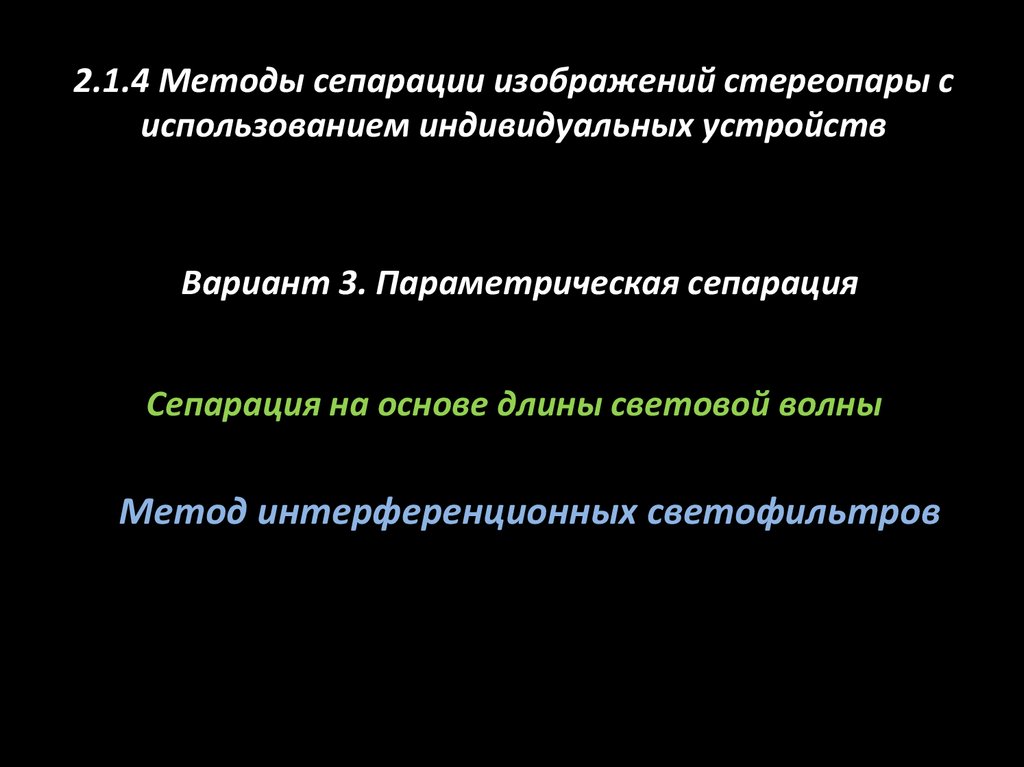 2.1.4 Методы сепарации изображений стереопары сиспользованием индивидуальных устройств