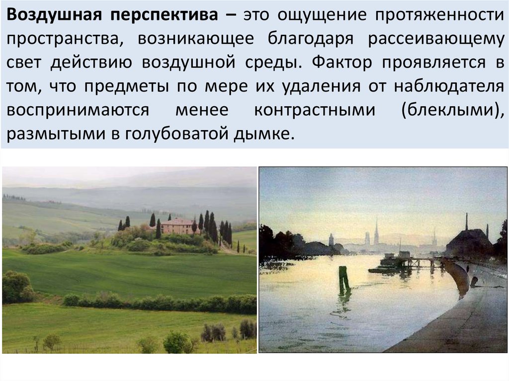Воздушная перспектива – это ощущение протяженностипространства, возникающее благодаря рассеивающему