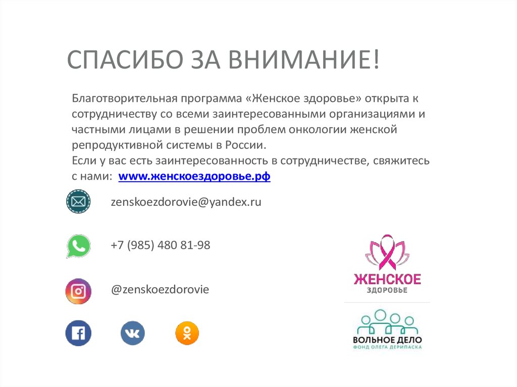 СПАСИБО ЗА ВНИМАНИЕ!Благотворительная программа «Женское здоровье» открыта к