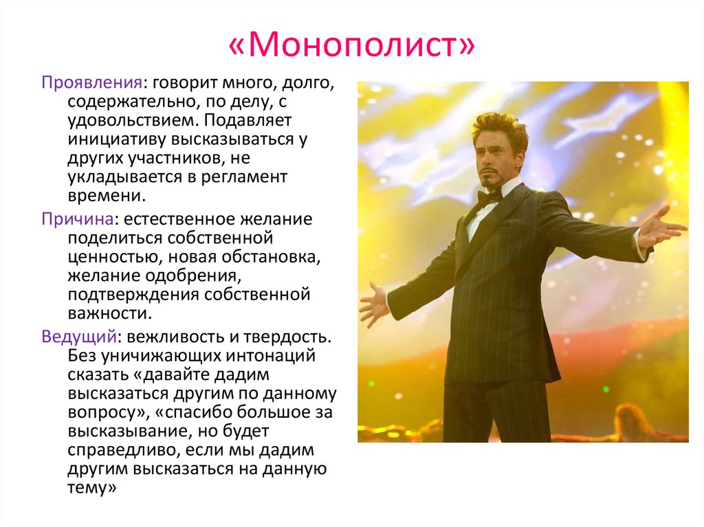 Проявления: выражает знания влюбых обсуждаемых вопросах,