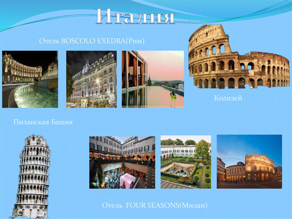 1.Переезд из Италии во Францию(Париж)2.Проживание в отеле HOTEL BARRIERE LE