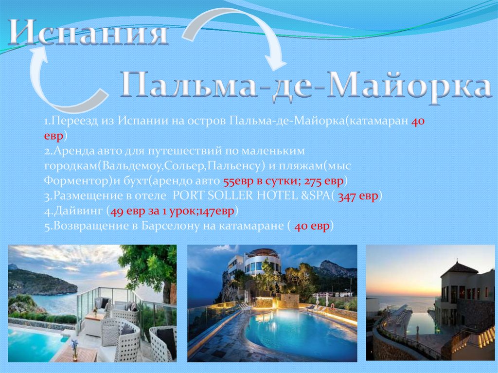 1.Переезд из Испании на остров Пальма-де-Майорка(катамаран 40евр)