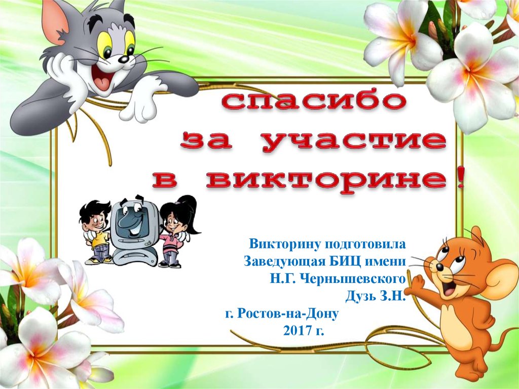 Викторину подготовилаЗаведующая БИЦ имени