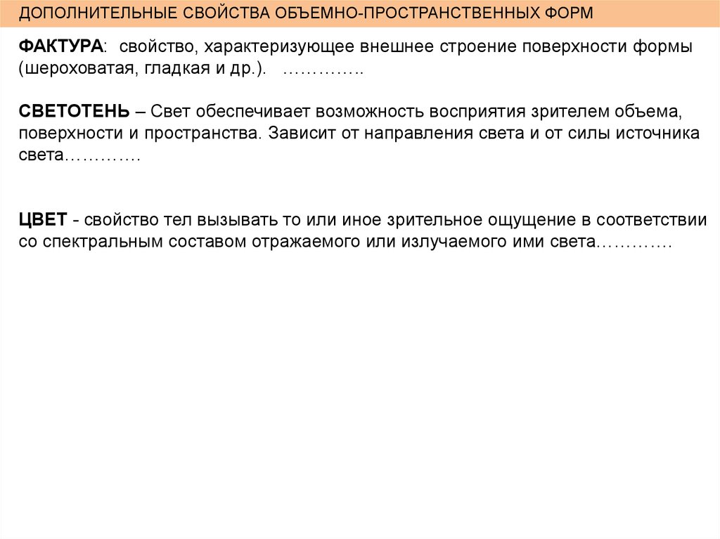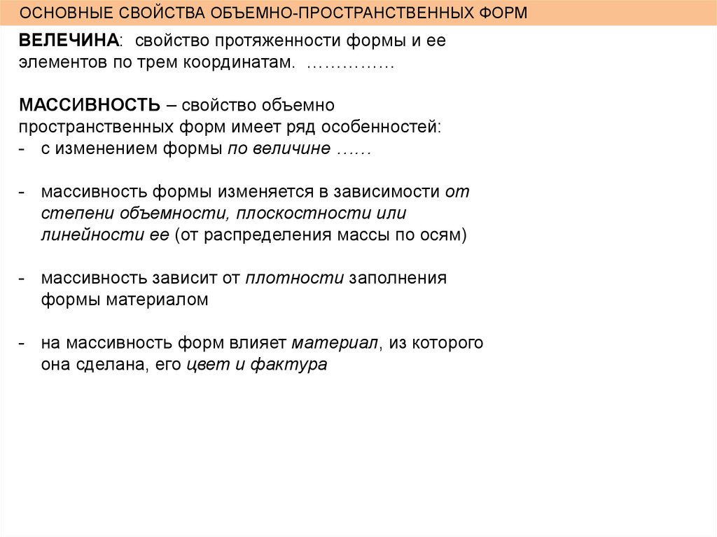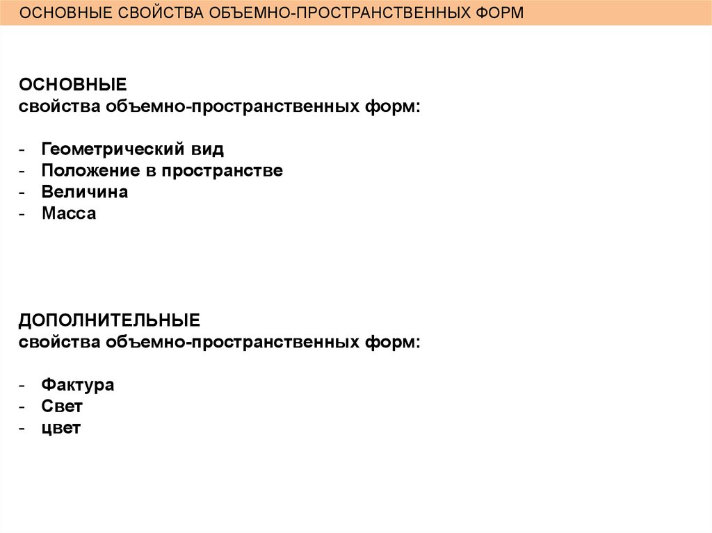 ОСНОВНЫЕ СВОЙСТВА ОБЪЕМНО-ПРОСТРАНСТВЕННЫХ ФОРМОСНОВНЫЕ