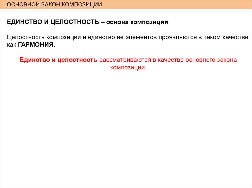 ОСНОВНОЙ ЗАКОН КОМПОЗИЦИИЕДИНСТВО И ЦЕЛОСТНОСТЬ – основа композиции