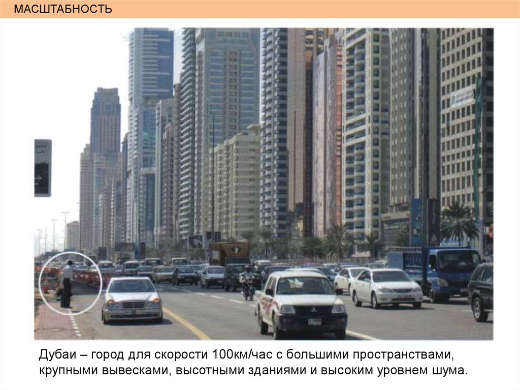МАСШТАБНОСТЬДубаи – город для скорости 100км/час с большими пространствами,