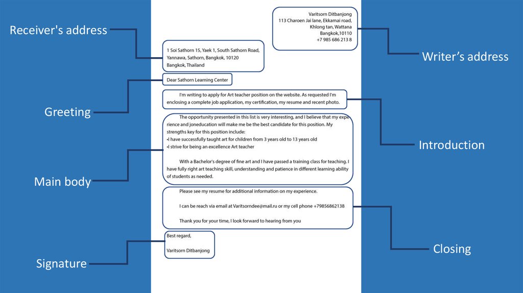 Receiver's addressWriter’s address