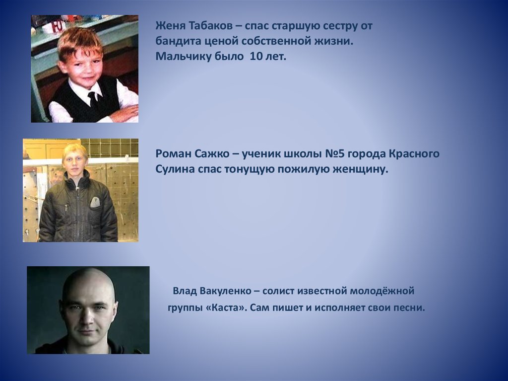 Женя Табаков – спас старшую сестру отбандита ценой собственной жизни.