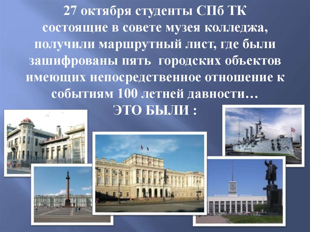 27 октября студенты СПб ТКсостоящие в совете музея колледжа,