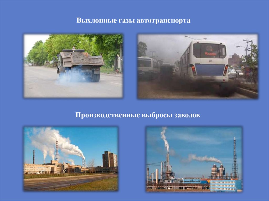 Выхлопные газы автотранспортаПроизводственные выбросы заводов