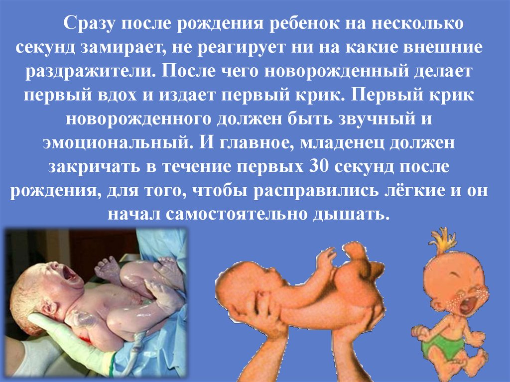 Сразу после рождения ребенок на несколькосекунд замирает, не реагирует ни на какие внешние