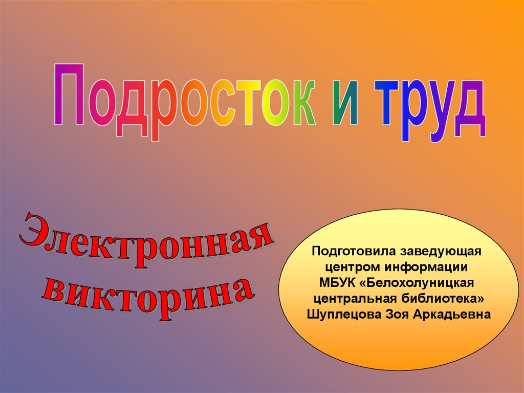 Подросток и труд. Электронная викторина