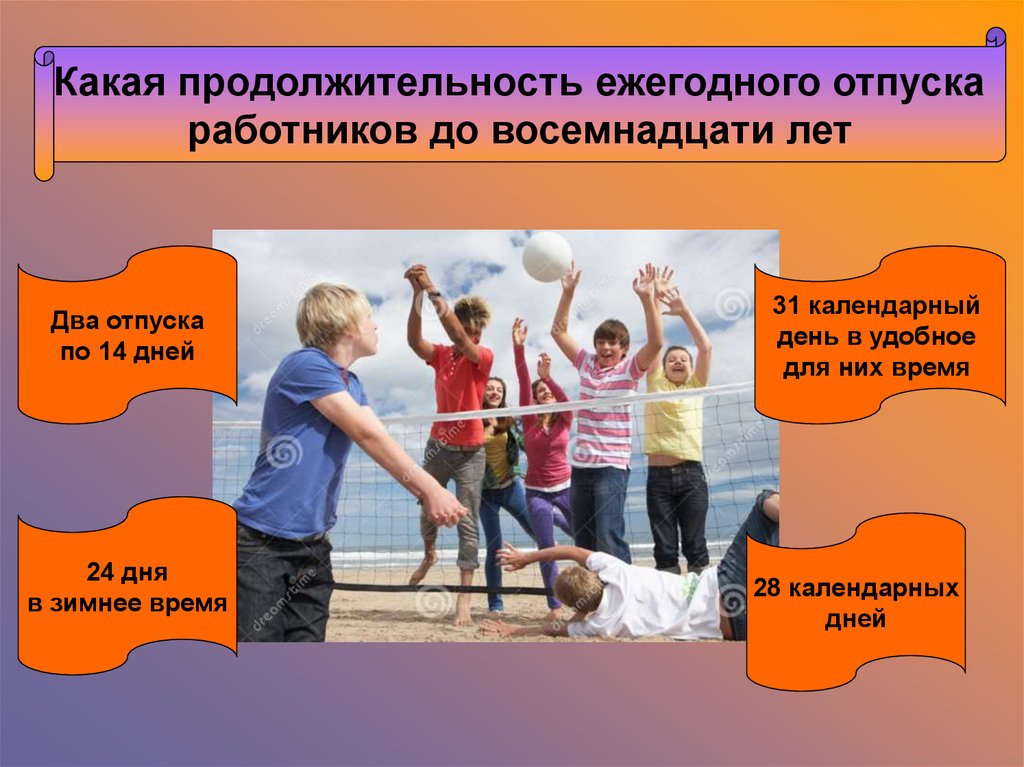 Какая продолжительность ежегодного отпускаработников до восемнадцати лет