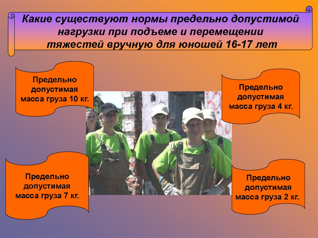 тяжестей вручную для юношей 16-17 лет