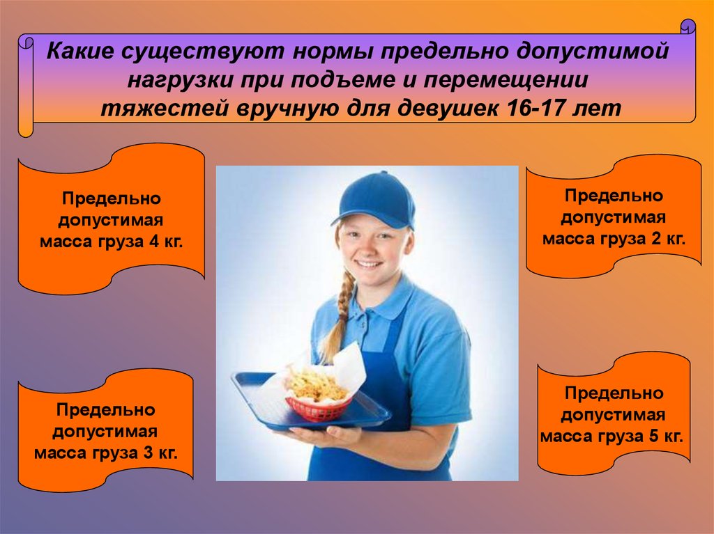тяжестей вручную для девушек 16-17 лет