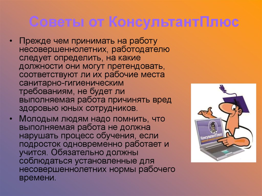 Советы от КонсультантПлюс• Прежде чем принимать на работу
