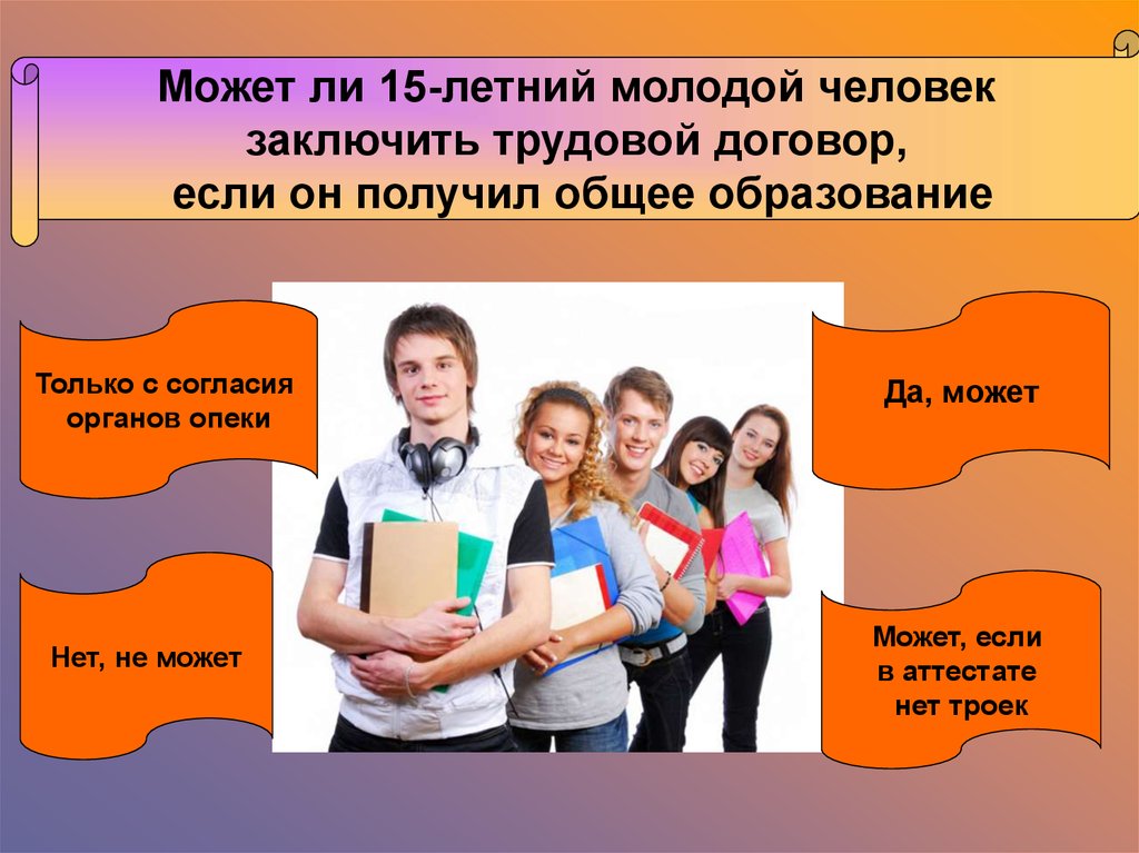 Может ли 15-летний молодой человекзаключить трудовой договор,