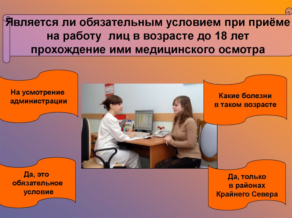 Является ли обязательным условием при приёмена работу лиц в возрасте до 18 лет