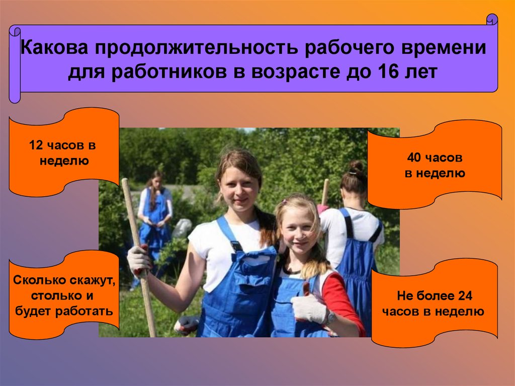 Какова продолжительность рабочего временидля работников в возрасте до 16 лет
