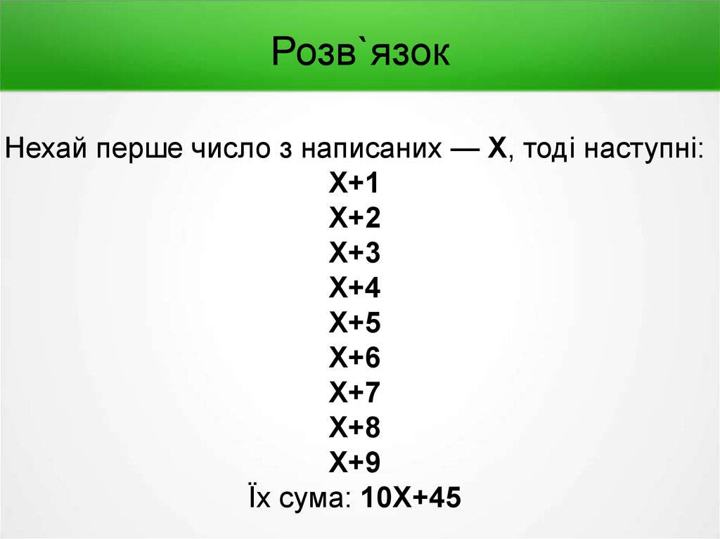 Розв`язокНехай перше число з написаних — Х, тоді наступні: