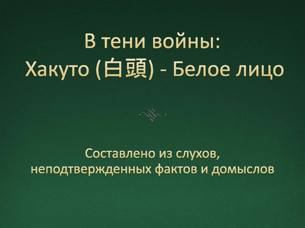 В тени войны: Хакуто (白頭) - Белое лицо