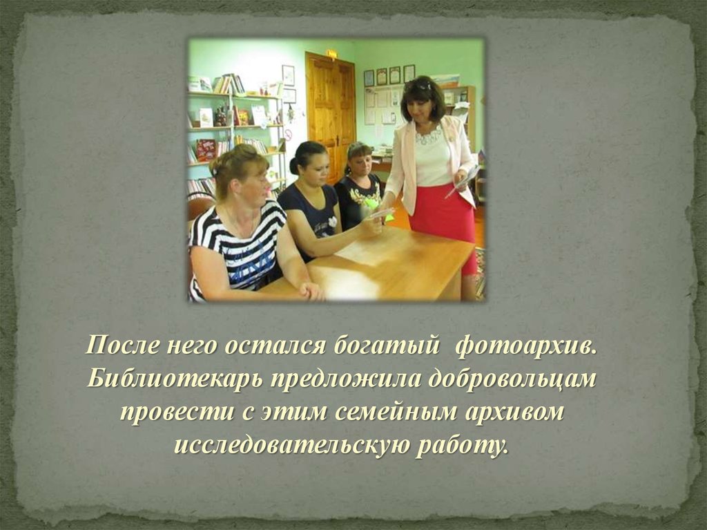 После него остался богатый фотоархив.Библиотекарь предложила добровольцам