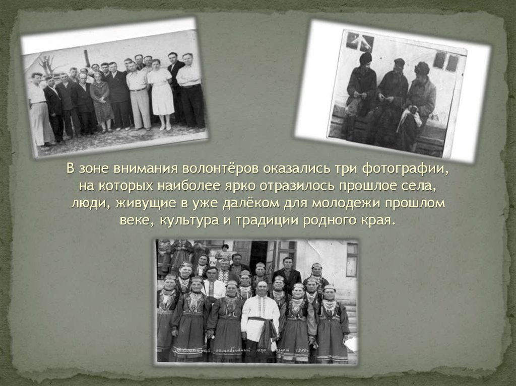 В зоне внимания волонтёров оказались три фотографии,на которых наиболее ярко отразилось прошлое села,