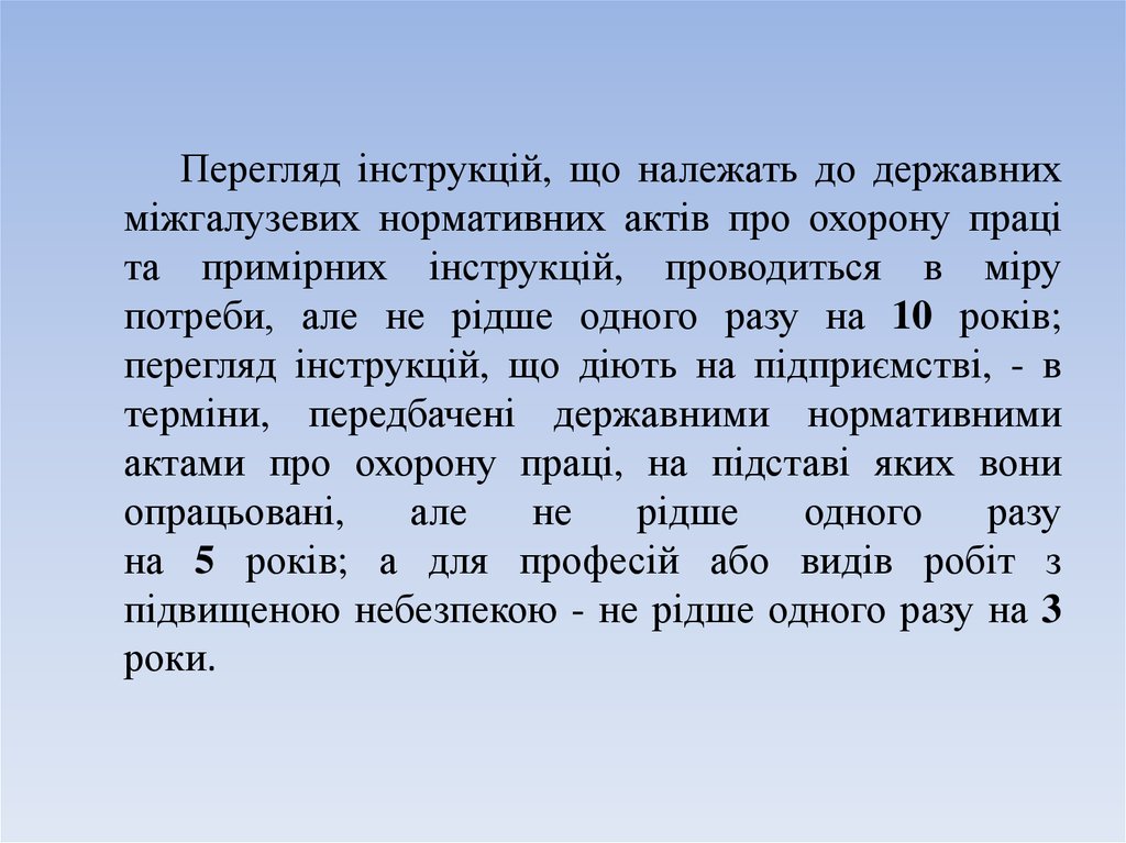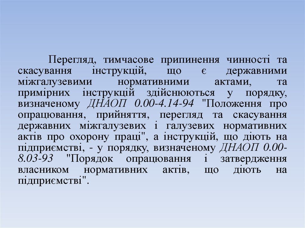 Перегляд інструкцій, що належать до державнихміжгалузевих нормативних актів про охорону праці