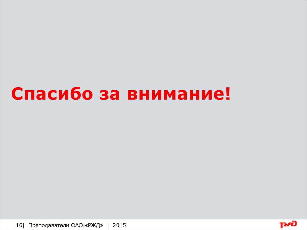 Спасибо за внимание!16| Преподаватели ОАО «РЖД» | 2015