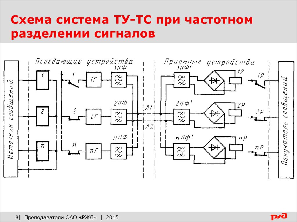 Схема система ТУ-ТС при частотномразделении сигналов