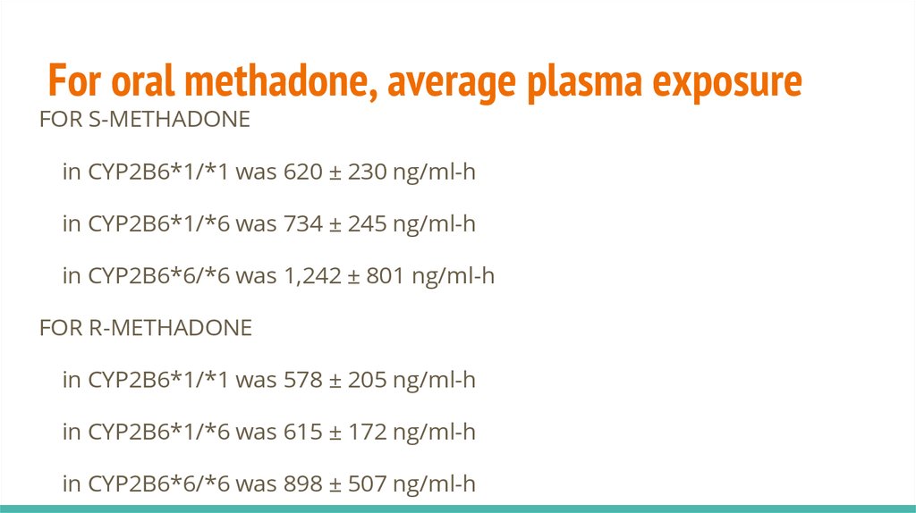 For oral methadone, average plasma exposureFOR S-METHADONE