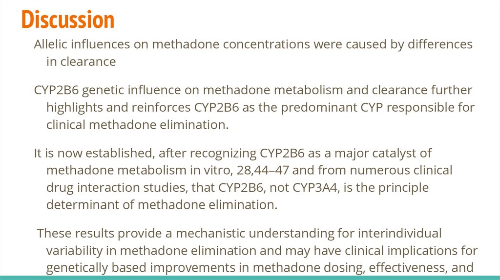 DiscussionAllelic influences on methadone concentrations were caused by differences