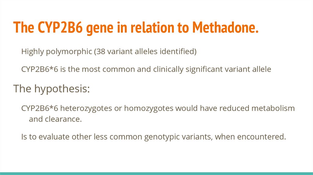 clinical methadone elimination. The CYP2B6 gene is highly polymorphic, with