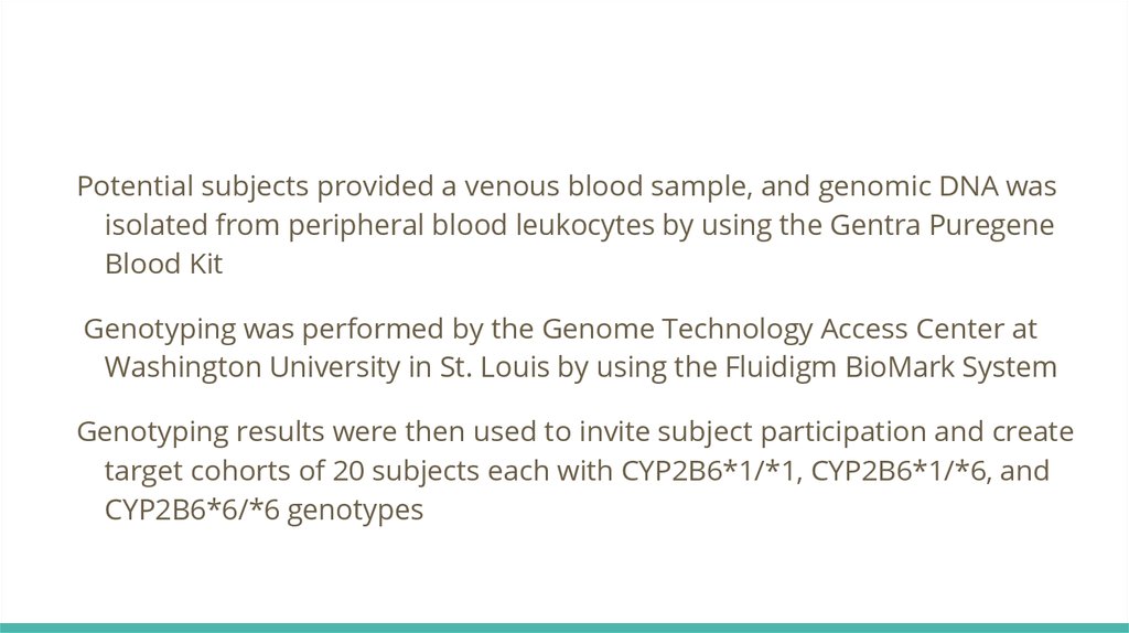 target cohorts of 20 subjects each with CYP2B6*1/*1, CYP2B6*1/*6, and