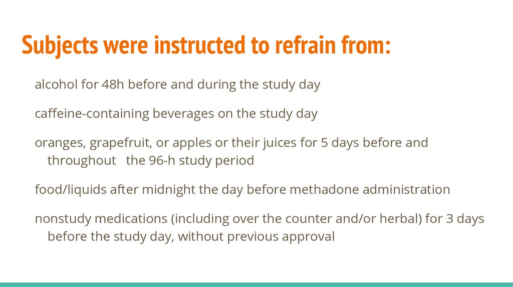 Subjects were instructed to refrain from:alcohol for 48h before and during the study day