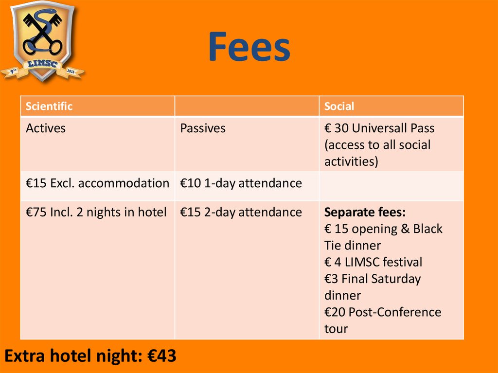 €75 Incl. 2 nights in hotel €15 2-day attendance
