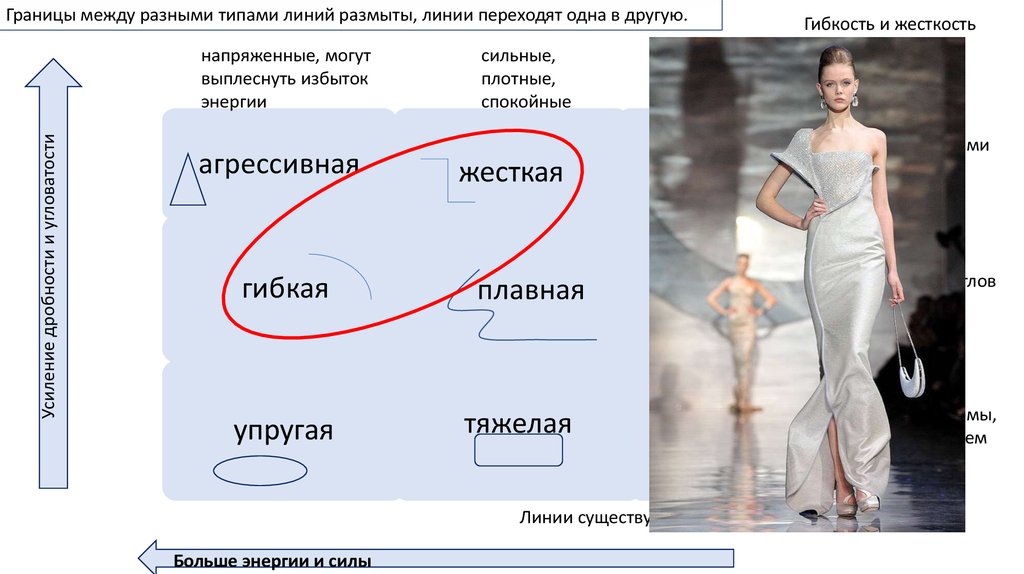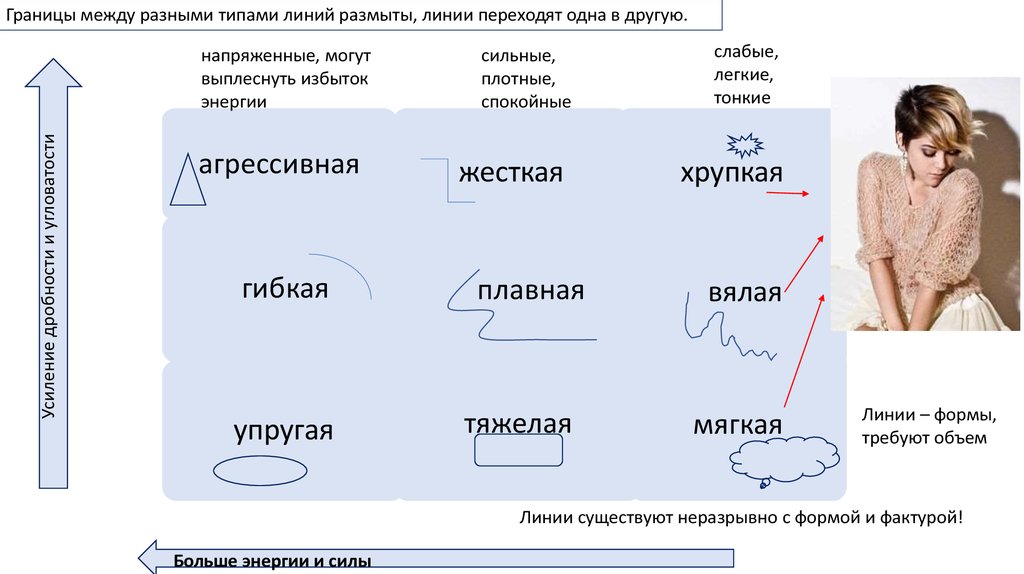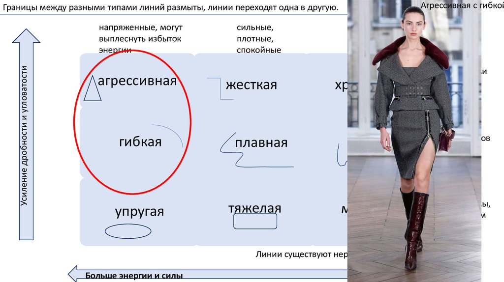 Агрессивная с гибкойГраницы между разными типами линий размыты, линии переходят одна в другую.