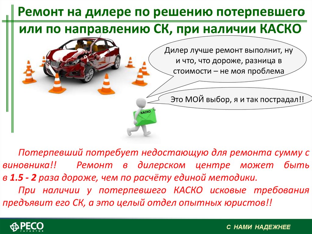(расчёт по ОСАГО) и ремонтом у дилера компенсирует ТОЛЬКО