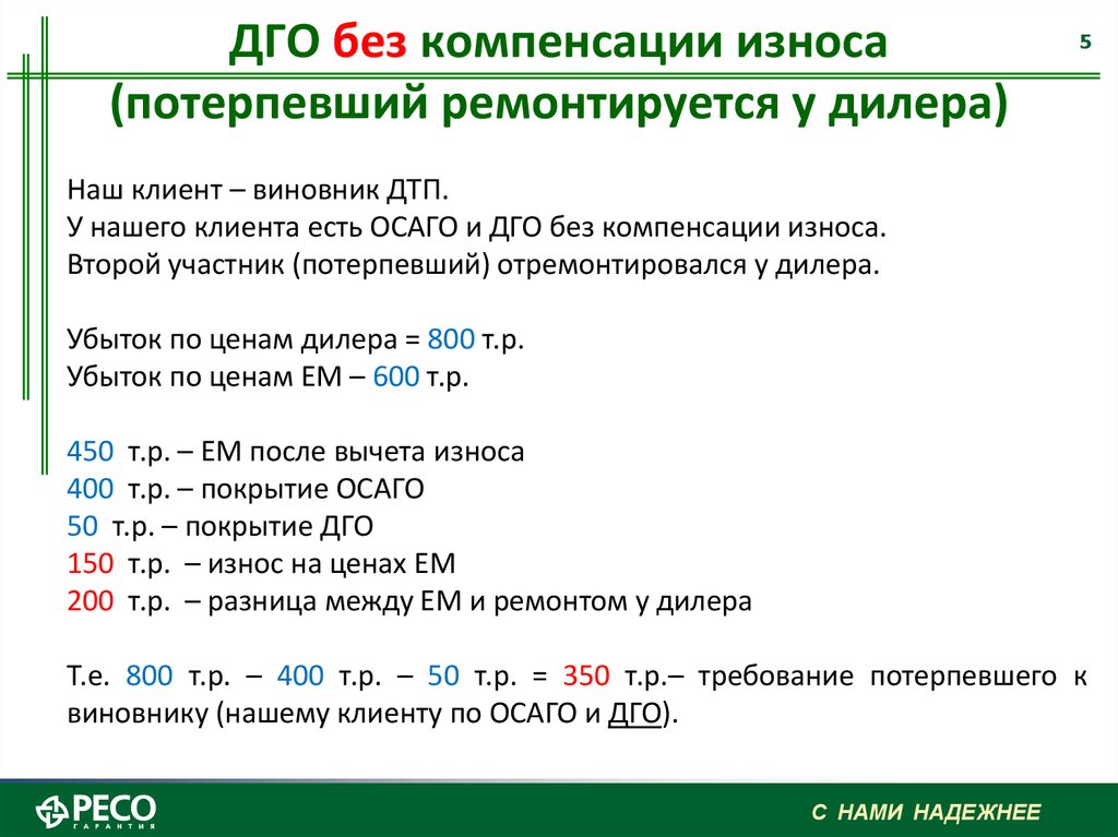ДГО без компенсации износа(потерпевший ремонтируется у дилера)