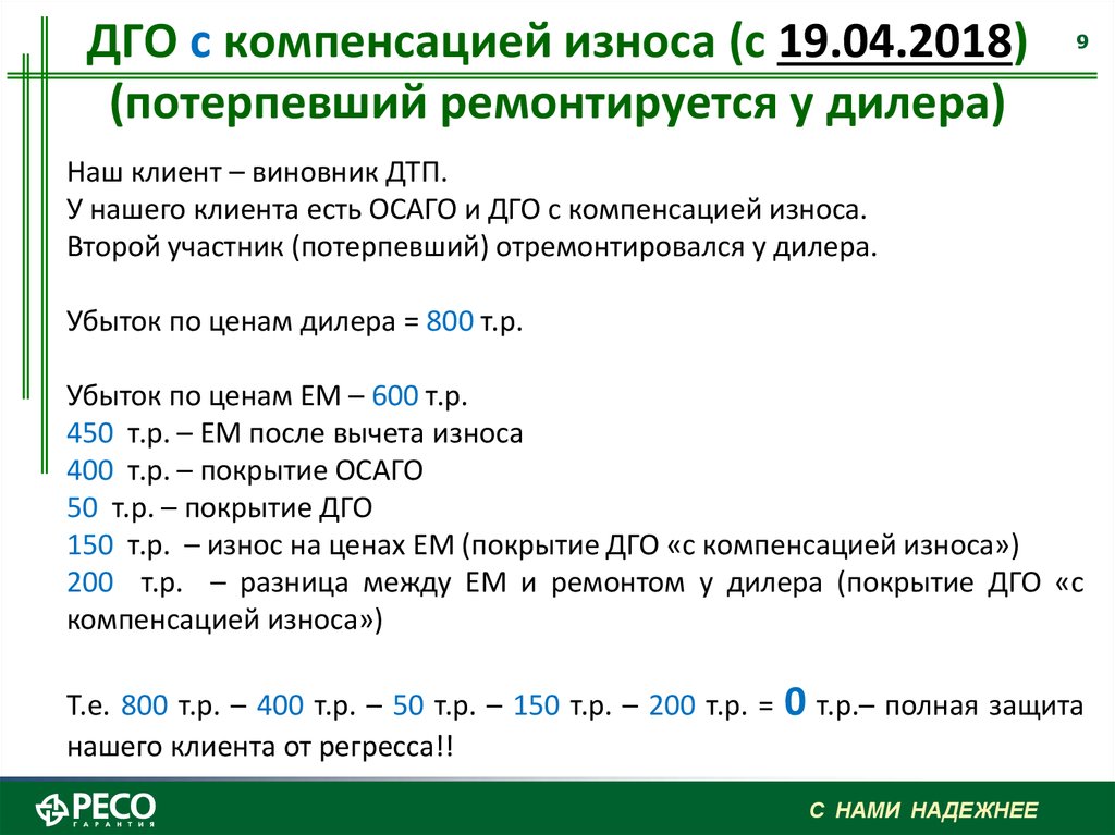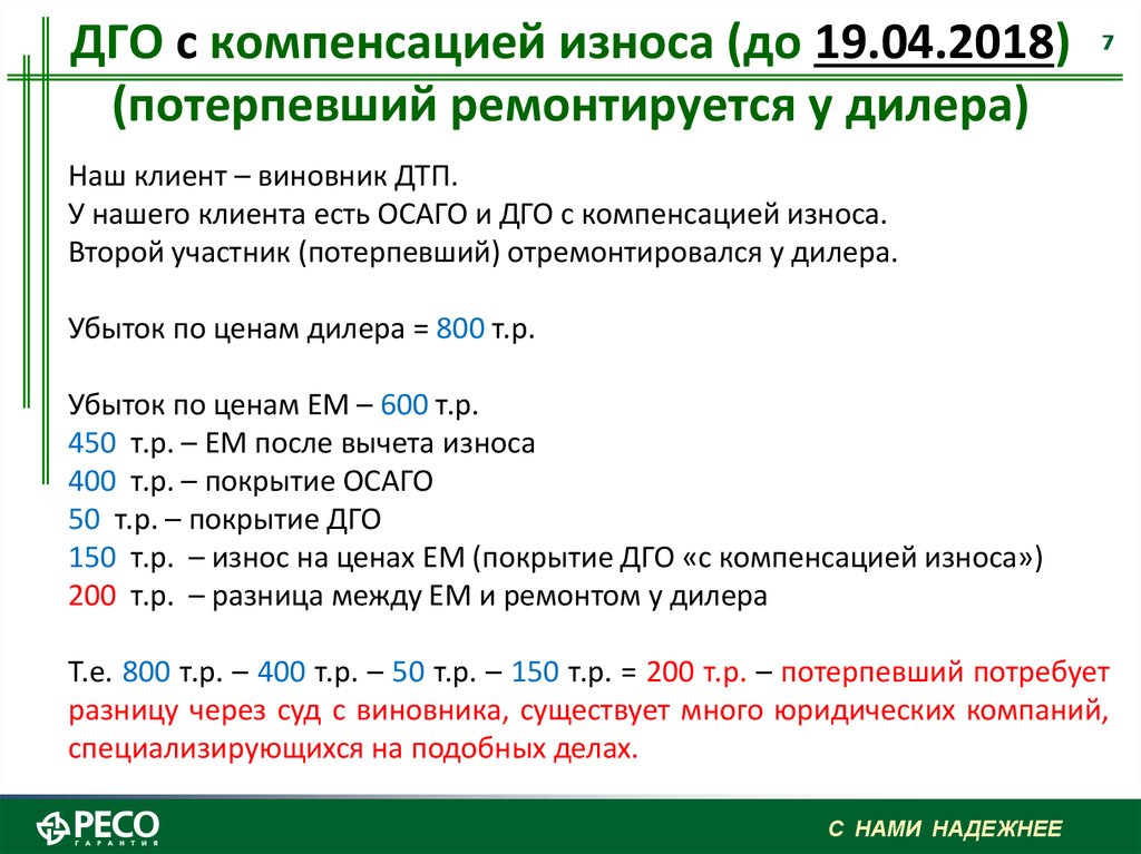 ДГО с компенсацией износа (с 19.04.2018)(потерпевший ремонтируется у дилера)