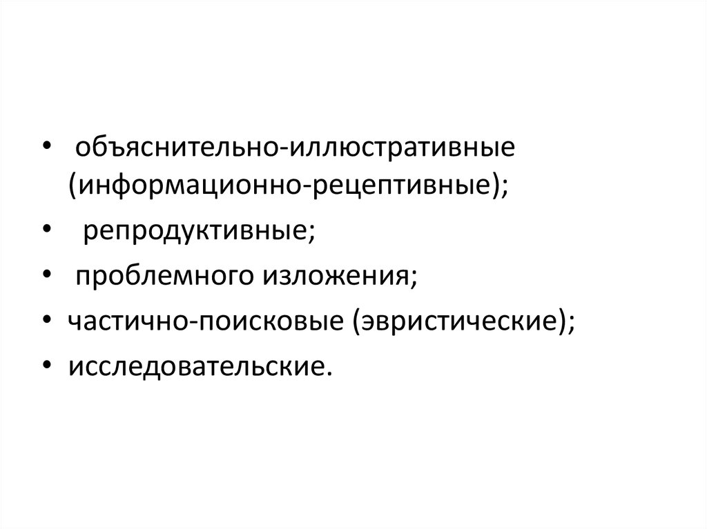 • объяснительно-иллюстративные(информационно-рецептивные);