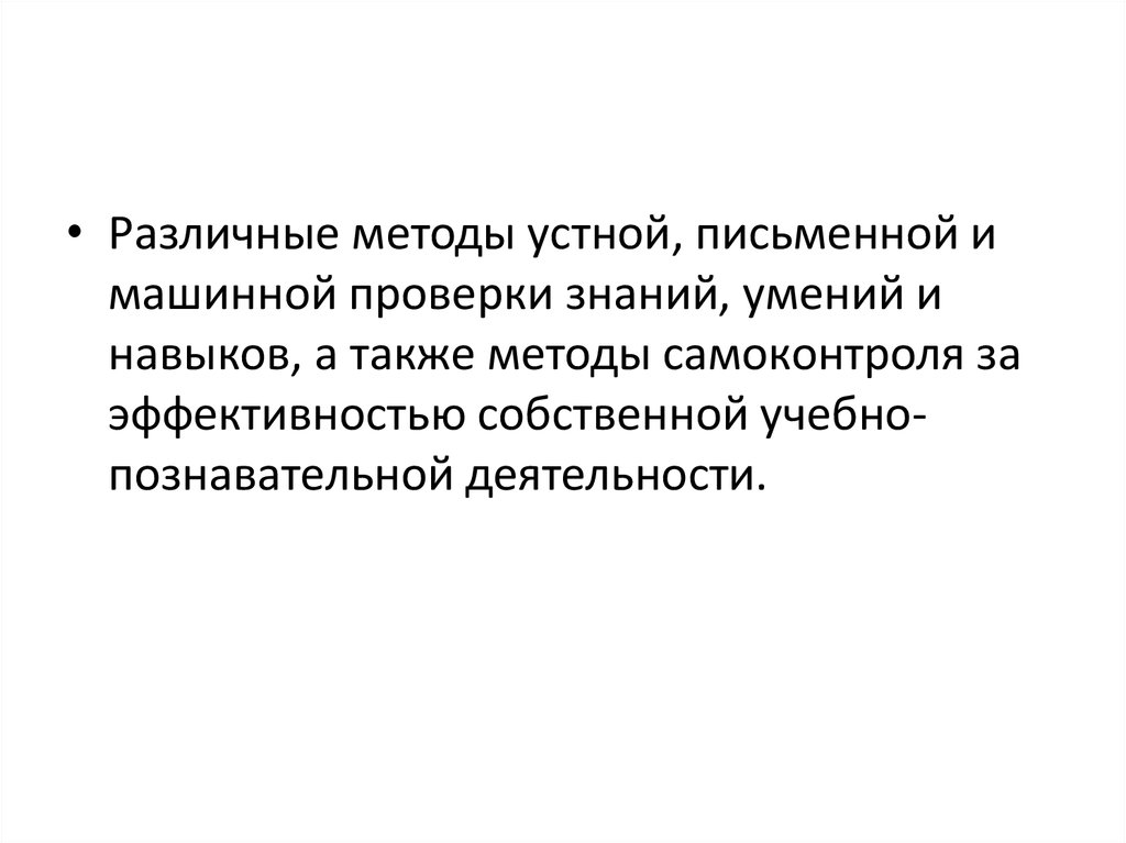 • Различные методы устной, письменной имашинной проверки знаний, умений и
