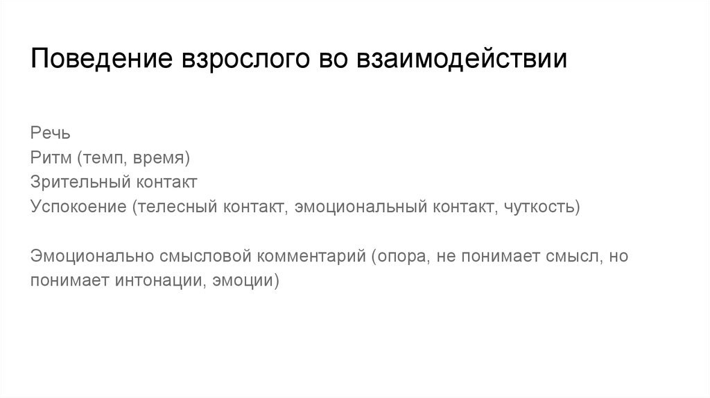 Поведение взрослого во взаимодействииРечь