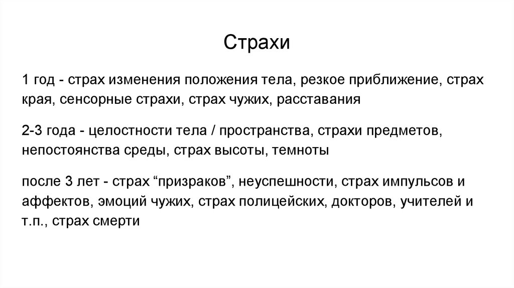 2-3 года - целостности тела / пространства, страхи предметов,
