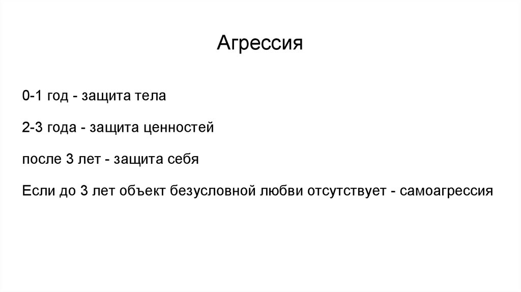 Если до 3 лет объект безусловной любви отсутствует - самоагрессия