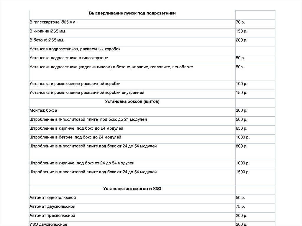 Прайс-листЭлектромонтажные работы 2016 Уфа, расценки, прайс, цены, прайс-лист,