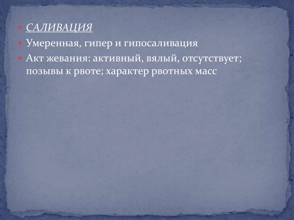 САЛИВАЦИЯУмеренная, гипер и гипосаливация
