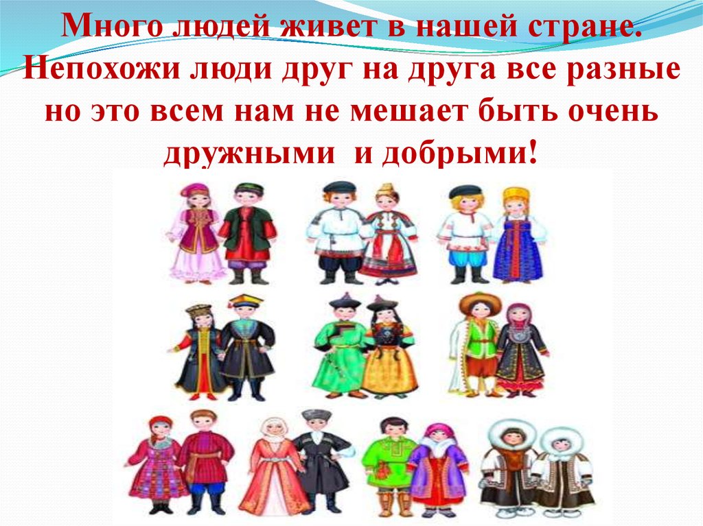 Много людей живет в нашей стране.Непохожи люди друг на друга все разные